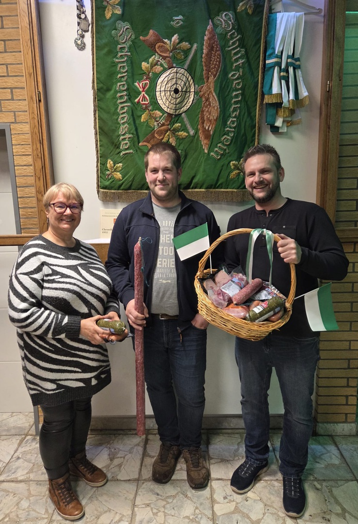 1. Hans-Jürgen Gutowski, 2. Florian Gräser, 3. Jutta Matzke. Sie waren auch die ersten, die sich einen Fleisch- oder Wurstpreis aussuchen konnten. Den besten Tagesteiler mit 8,4 erzielte unser Gast