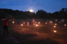 Zunächst mussten Platz und Zeltwiese hergerichtet werden. Dann noch alle Vorbereitungen zum Grillen. Damit wurde ab 19 Uhr gestartet, so dass wir gegen 21:00 die Fackeln entzünden konnten.